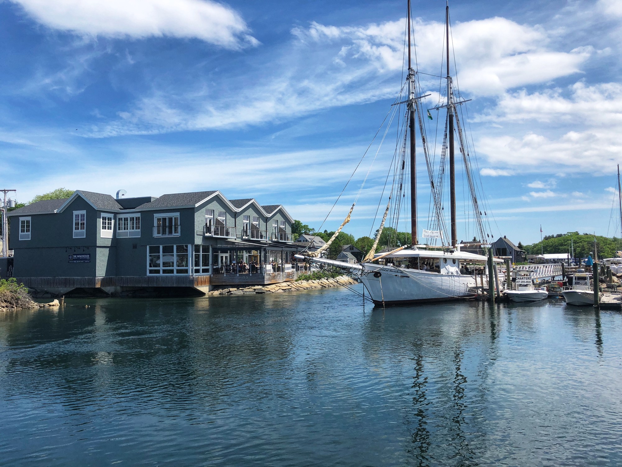 Spirit of Massachusetts | To me, there is nothing more adorable than a floating restaurant in a cute coastal town. The Spirit of Massachusetts is a 125-foot schooner that was built in New England. It served as a goodwill ambassador for the Commonwealth of Massachusetts while sailing the globe as an educational vessel. In 2014, The Spirit of Massachusetts was restored and brought to Kennebunk’s harbor as a floating restaurant with delicious cocktails and small plates. For us, it was the perfect place for a late afternoon cocktail.